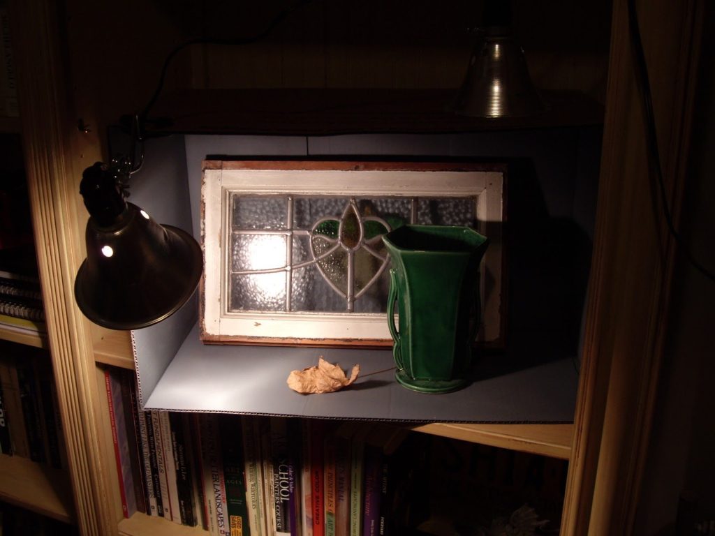 Ezzel szemben egy csendélet esetében a megvilágítást is szabadon variálhatjuk, oda tesszük, a fényeket ahová akarjuk, szabadon variálhatunk a fény erősségével, minőségével, és irányával. Teljesen uralni tudjuk ezáltal a fény – árnyék hatásokat, megtalálva a festményünkhöz a legjobban illő megvilágítást. Akár természetes akár mesterséges fényeket is használhatunk.