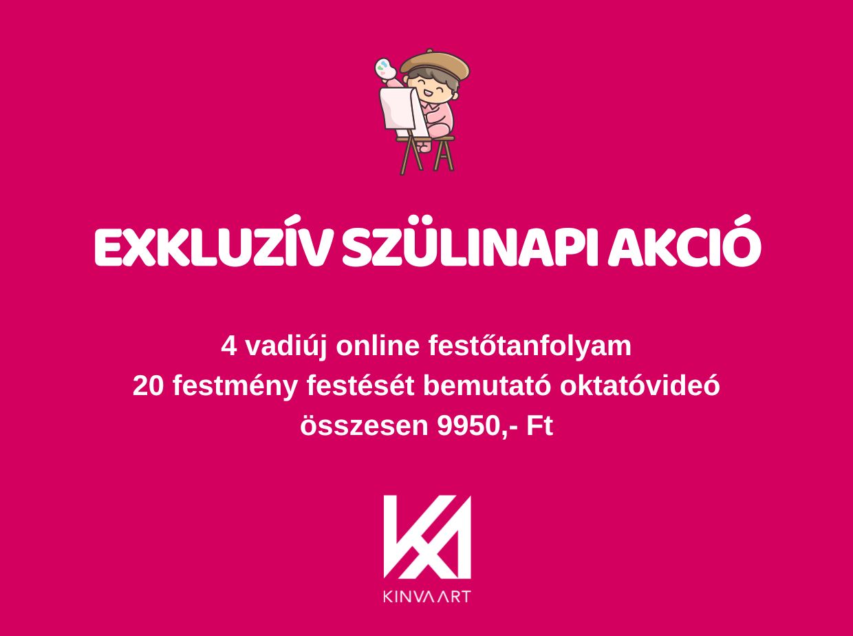 1.) 88% kedvezményt kapsz: A következő 4 db. online festészeti videósorozatomat kérheted kb. 1 db. online kurzus áráért. Most 79.800 Ft helyett 9950 Ft-ért kérheted a képzéseket!