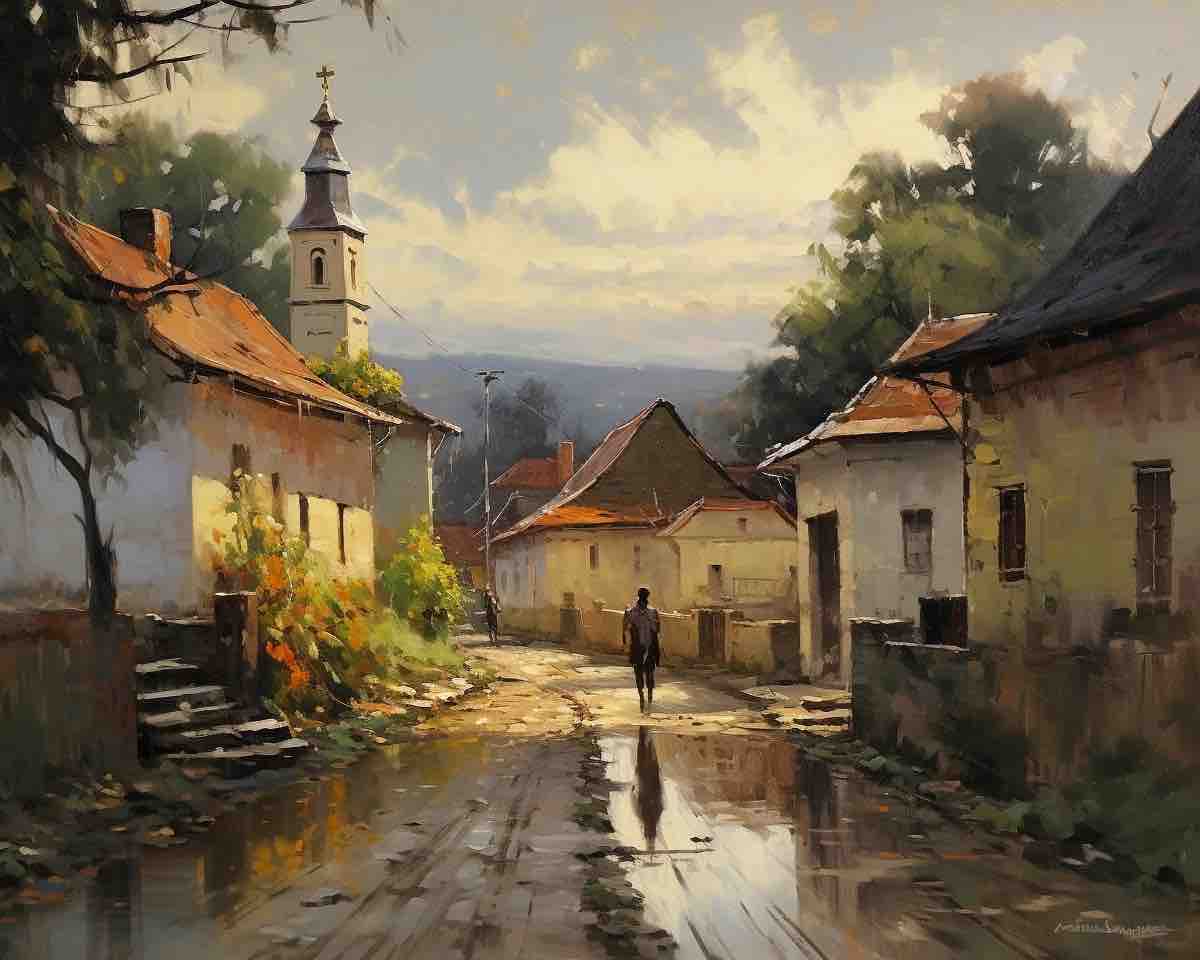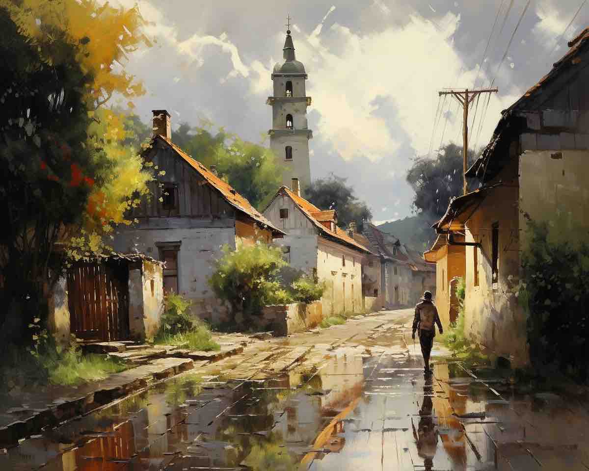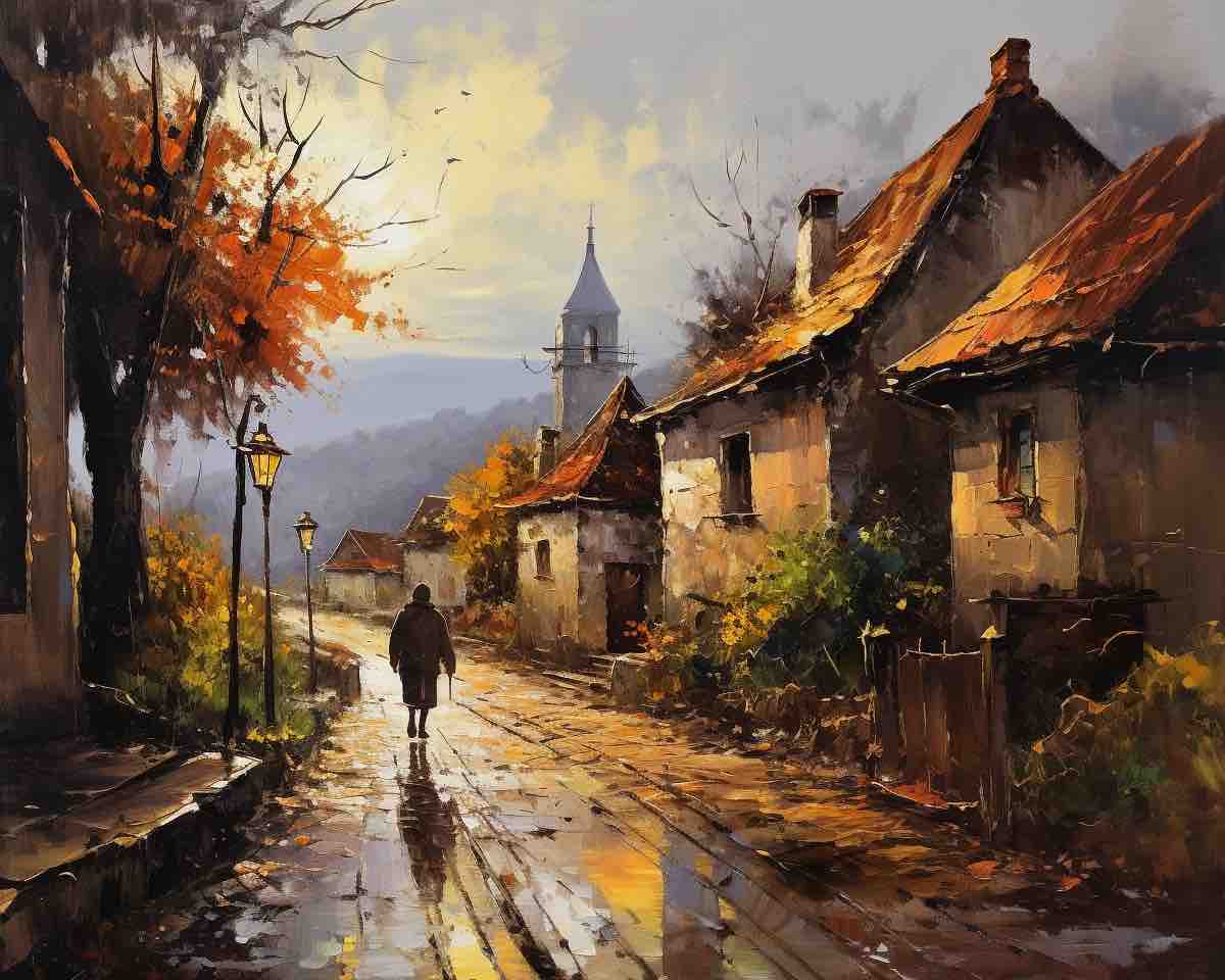 - Az online festőtanfolyamon megismerkedünk a realista Falusi Utcakép festés módszereivel.