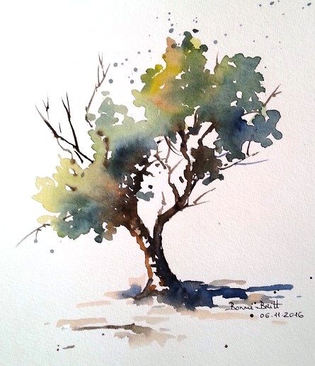 Fák, víz, nedves a nedvesen technika ábrázolása az akvarellfestésben