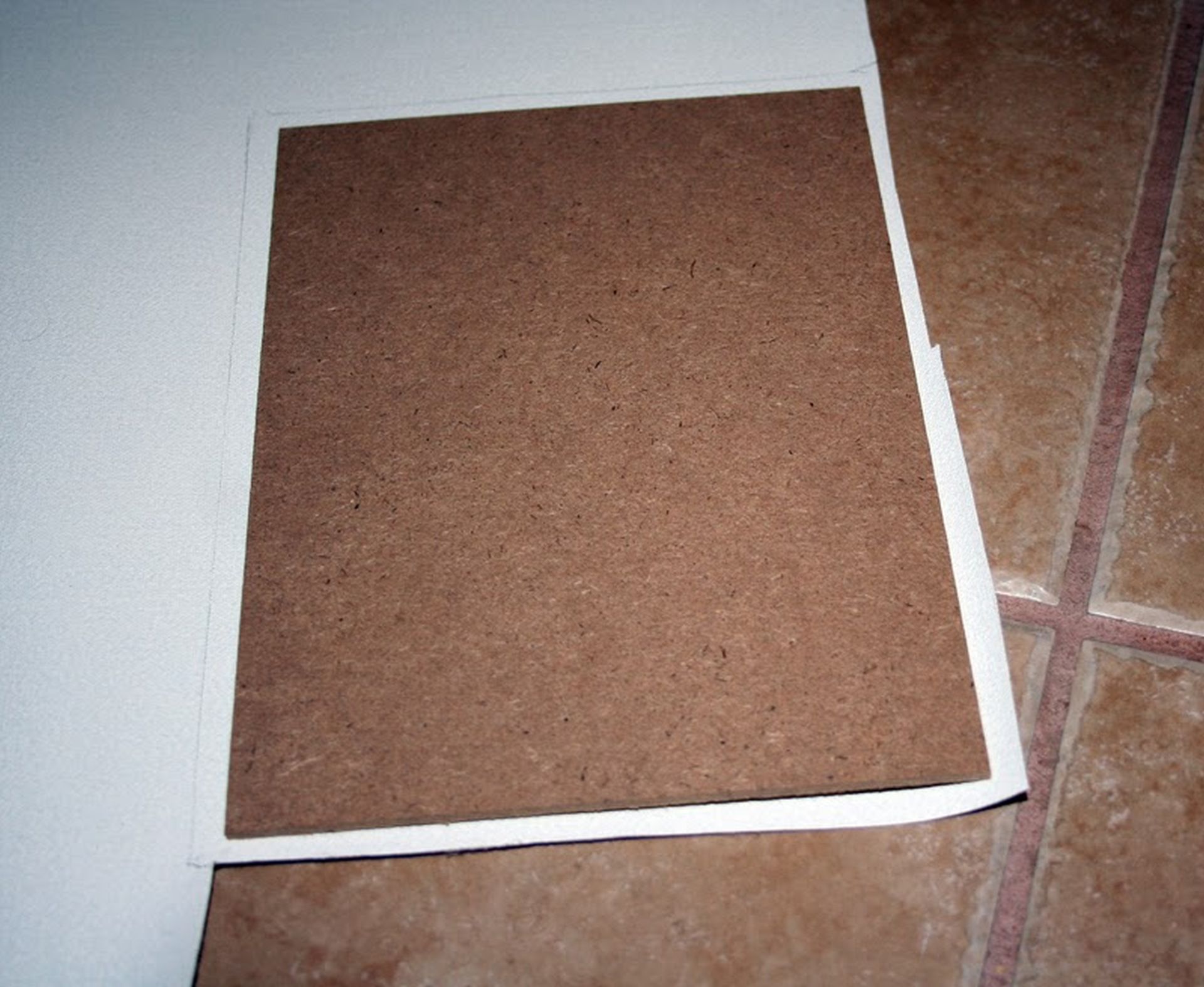 Körbevágjuk a lemez méretének megfelelő vásznat, úgy, hogy kb. 1-1 cm minden oldalon kilógjon. Erre azért van szükség, mert a ragasztóval átitatott vászon kissé zsugorodik száradás közben, és ha pont “passzentos” lenne, akkor esetleg a vászon száradás utánra beljebb húzódna, mint a farost széle. Ezért rá kel hagyni egy kicsit, így eligazítani is könnyebb a vásznat, másrészt a fenti hibát is kiküszöböljük, A fölösleget a végén majd levágjuk.
