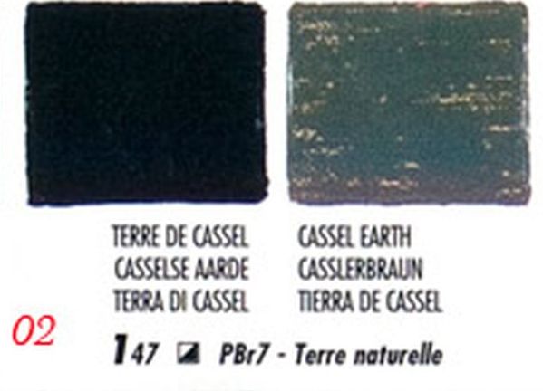 A Kasseli föld félig fedő festék, ezt a Blockx színmintájában félig teli négyzettel jelölik