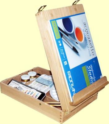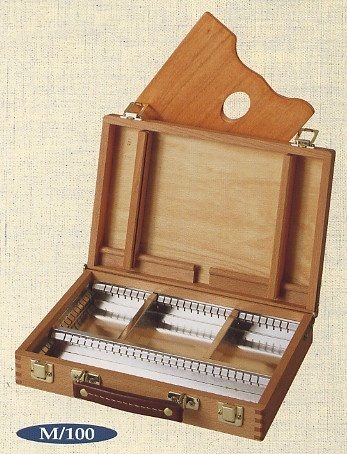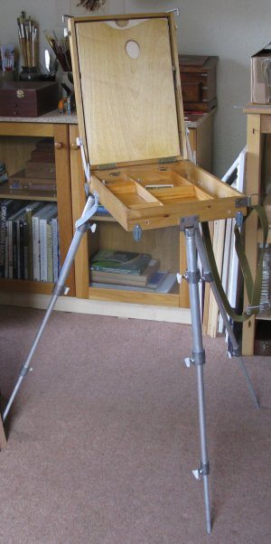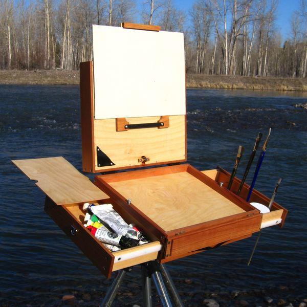 A dobozos tábori állványok nagyon praktikus eszközök, melyek egyszerre képesek a festékeket, palettákat, ecseteket és egyéb eszközöket, esetleg még festményt is hordozni, tárolni, ugyanakkor állványként is funkcionálnak.
