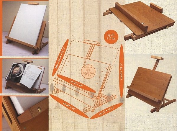 Az asztali festőállványok e legkisebbek és legolcsóbbak, ha szeretünk asztalnál dolgozni és nem akarunk nagy képeket festeni ezek is szóba jöhetnek.