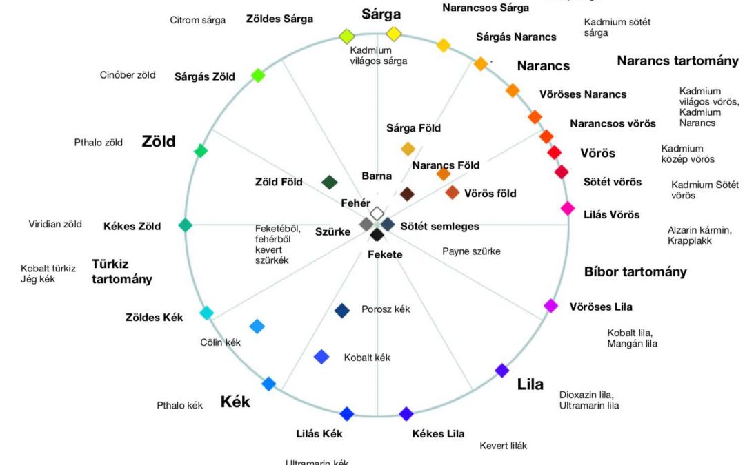 Ez óriási segítséget jelent a festékválasztásnál, és a színkeverés tudatossá tételében. Továbbá abban is segítségünkre lesz, hogy mindíg tudjuk, hogy egy tubus festékben milyen színek található, hogy ténylegesen milyen színeket keverünk egymással.