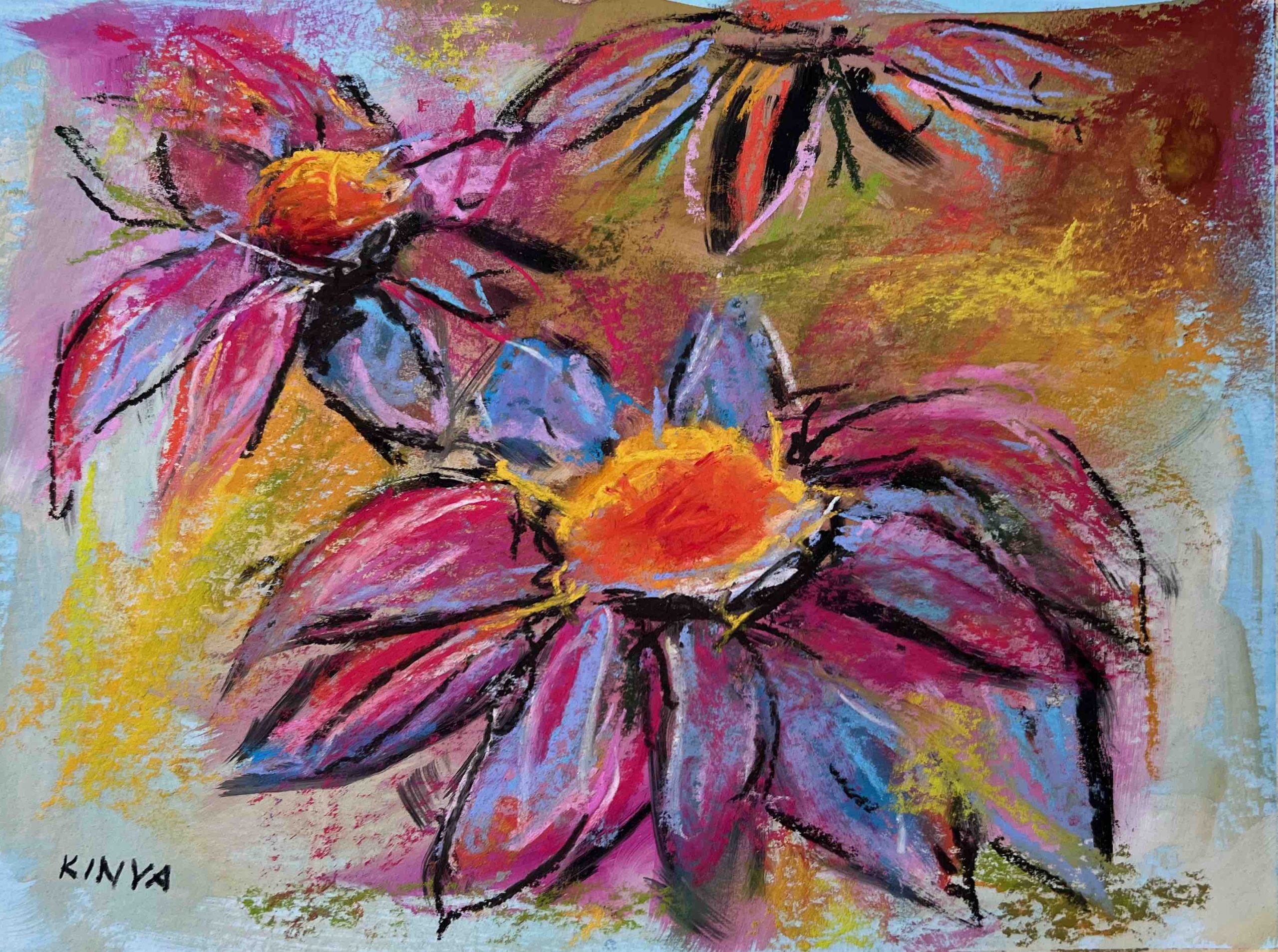 A videóban absztrakt-expresszív virágfestmény festését mutatom be! A képet vegyes technikával csináljuk, akvarellpapírra, a pasztell krétát gouache festékkel kombinálom.