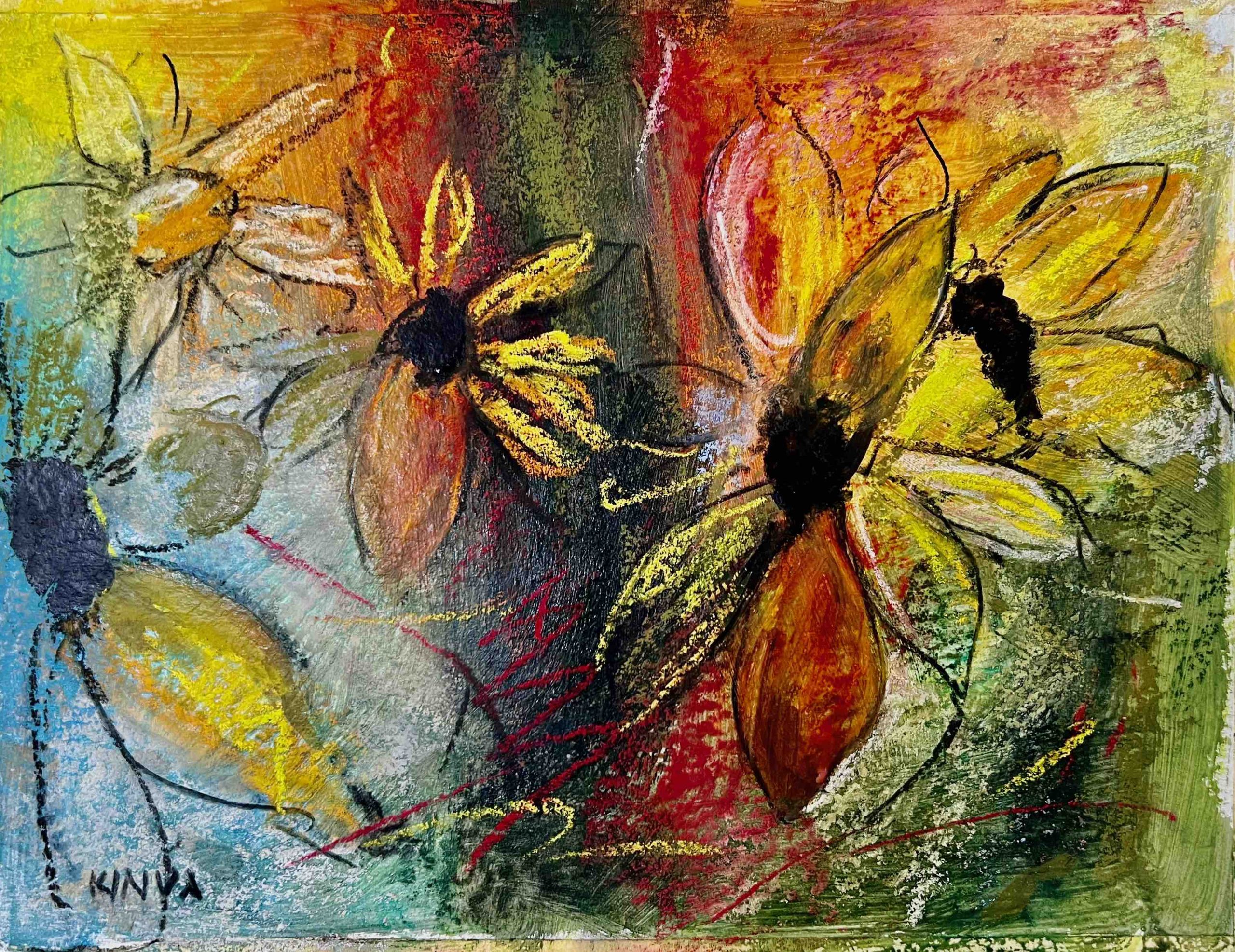 A videóban absztrakt-expresszív virágfestmény festését mutatom be! A képet vegyes technikával csináljuk, akvarellpapírra, a pasztell krétát akrill lakkal kombinálom.